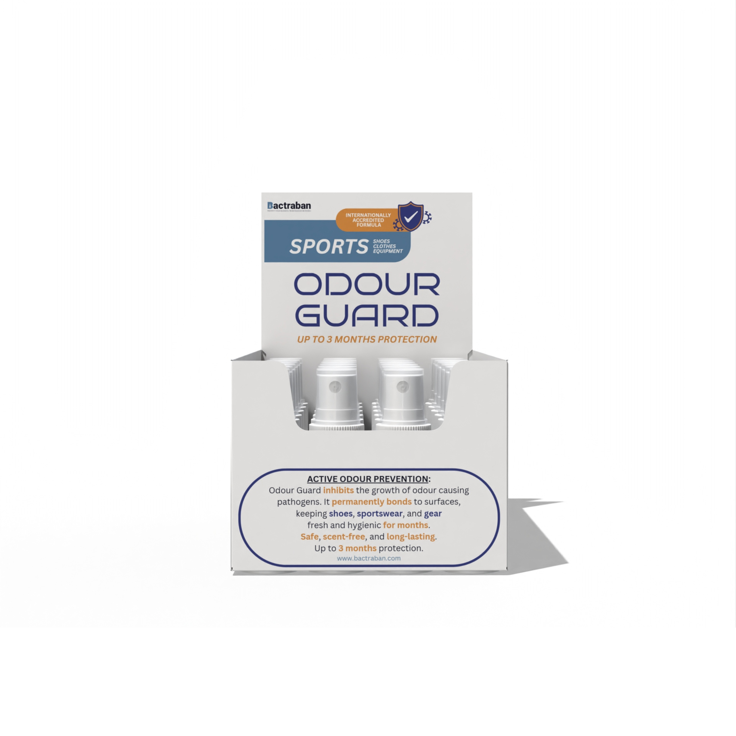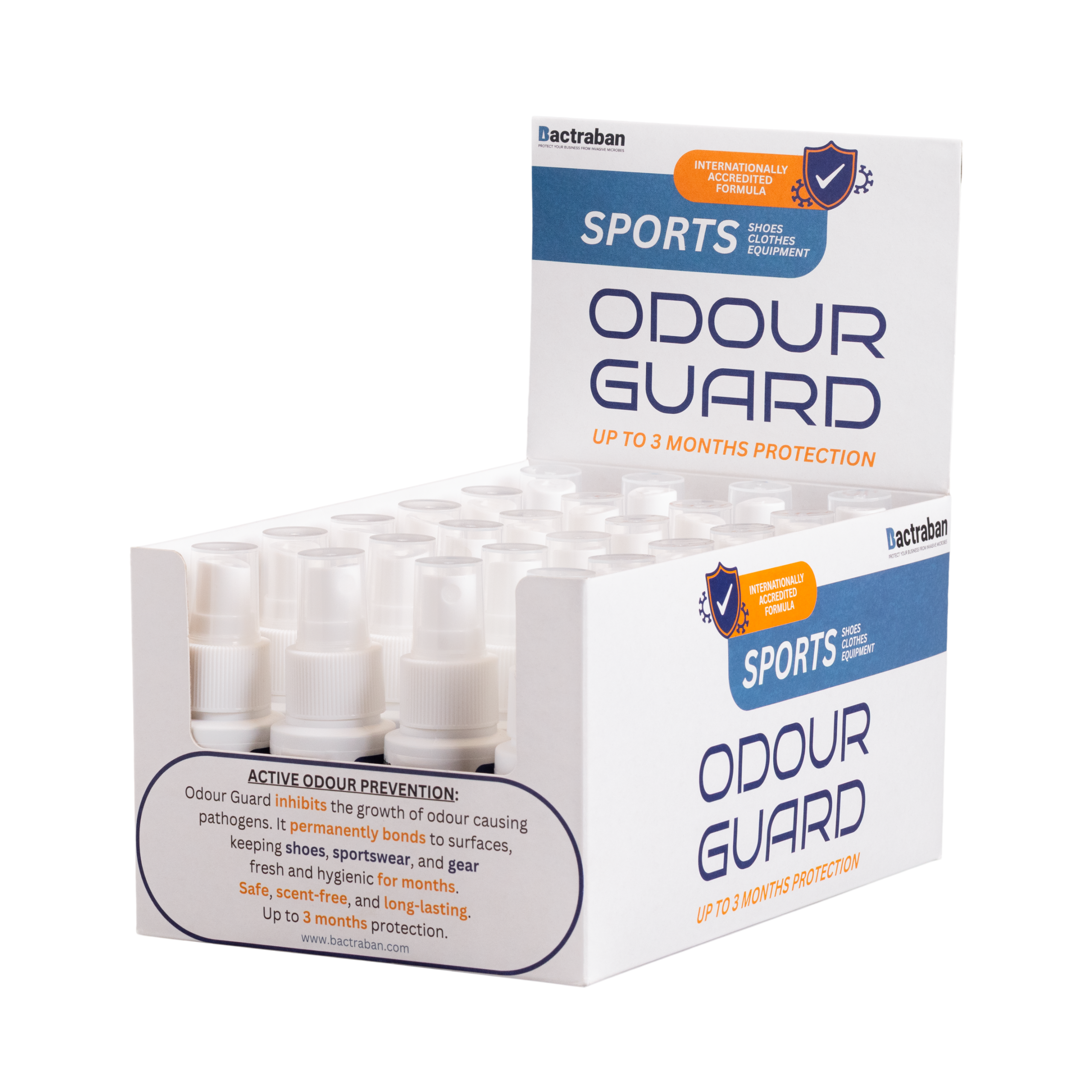 This powerful technology doesn’t just mask odours — it stops them at the source by inhibiting the growth of odour causing pathogens. Once applied, Odour Guard bonds to the surface and keeps working for months, even through heavy use. Safe, non-leaching, and odourless, it’s perfect for shoes, activewear, pads, helmets, and bags. Keep your gear fresh, hygienic, and ready to perform — no reapplication needed after every workout.